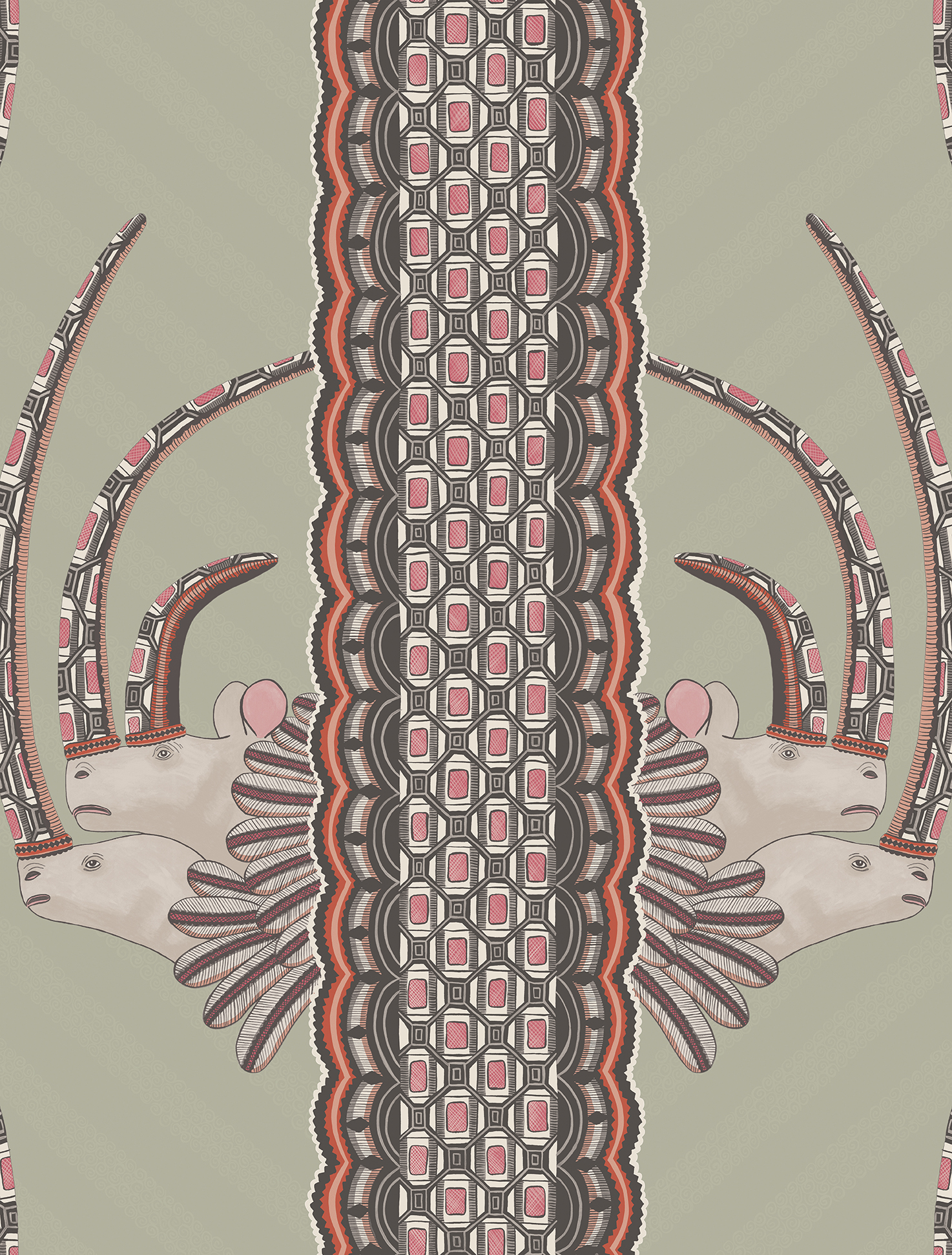 Jaby 109-3017 wallpaper is from the charming and stylish new range of wallpapers and borders in collaboration with Ardmore Ceramic Art celebrating African traditions and culture. Drawing inspiration from Ardmore’s colourful and quirky ceramics the collection explores Africa’s exotic flora and majestic fauna: from rare birds to big cats, elephants, rhinos and mischievous monkeys; as well as the beautiful patterns of Zulu beadwork and woven basket ware.