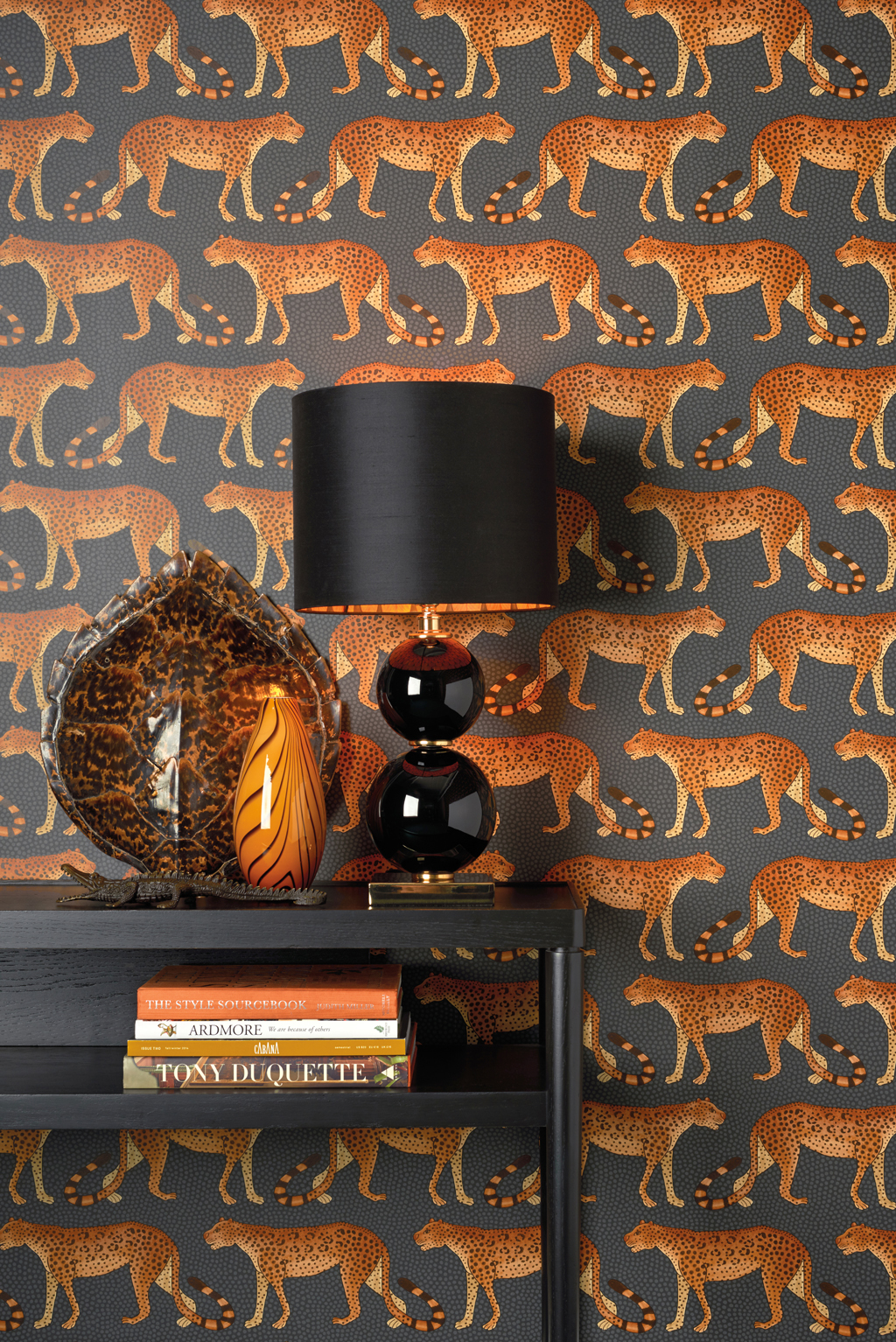 Leopard Walk 109-2008 wallpaper is from the charming and stylish new range of wallpapers and borders in collaboration with Ardmore Ceramic Art celebrating African traditions and culture. Drawing inspiration from Ardmore’s colourful and quirky ceramics the collection explores Africa’s exotic flora and majestic fauna: from rare birds to big cats, elephants, rhinos and mischievous monkeys; as well as the beautiful patterns of Zulu beadwork and woven basket ware.