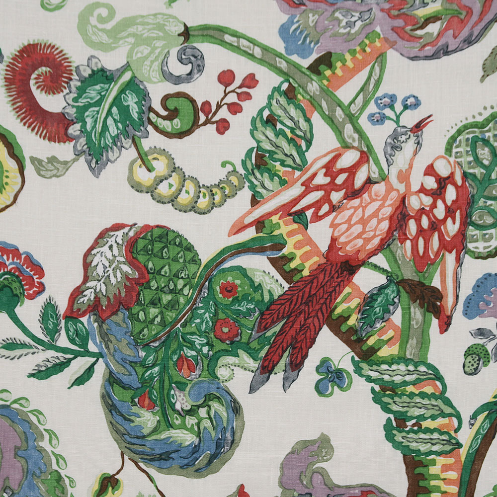 We are delighted to re-launch our best-seller Poppinjay bird print with a selection of seductive new colours in both linen and velvet