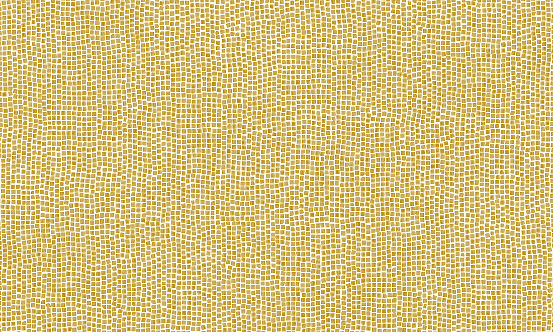 Tessera 70550 Gold Medaillon wallcovering. This textile wallcovering has a weathered but still warm look thanks to the luxurious bouclé fabric. The horizontally woven multicolour threads lend depth and relief to the pattern. The visible metal threads ensure a subtle sheen.