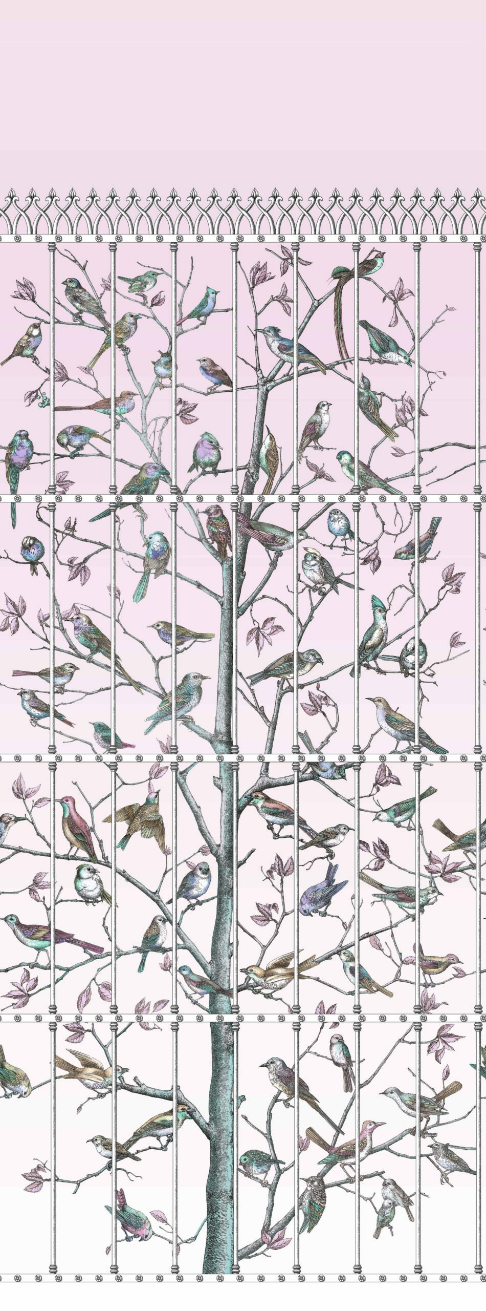 Uccelli, meaning birds, originated as luxurious folding screens depicting vibrantly coloured birds of all species adorning sparse branches. Since translated to a beautifully intricate wallcovering panel design, this delicate motif brings an ornate quality to a stand-alone feature wall or, used in repeat, creates a stunning aviary rich in detail and colour. Cole & Son has updated this arresting study with two new unique colourways, Ballet Slipper pink and Cerulean Sky.
