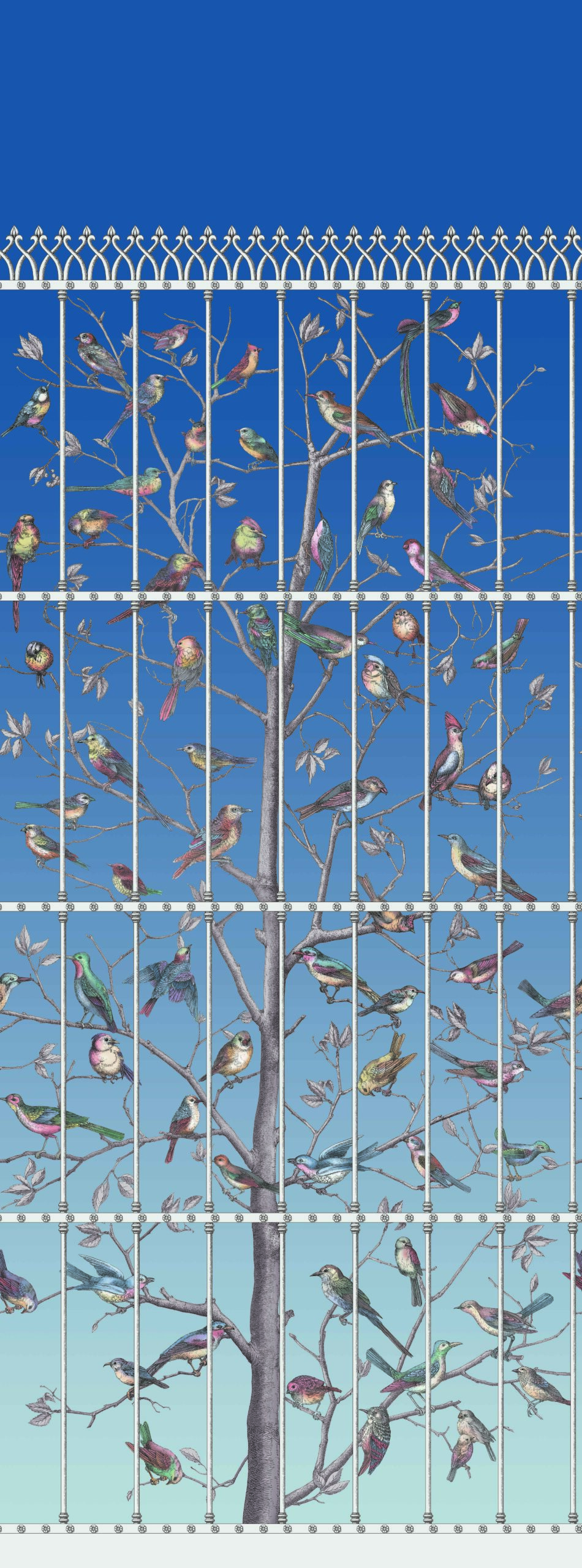 Uccelli 114-11023 wallpaper is an exceptional design, re-coloured with panache and will make a striking feature in any room that it is used in. Take the influence of Fornasetti into your own home.
